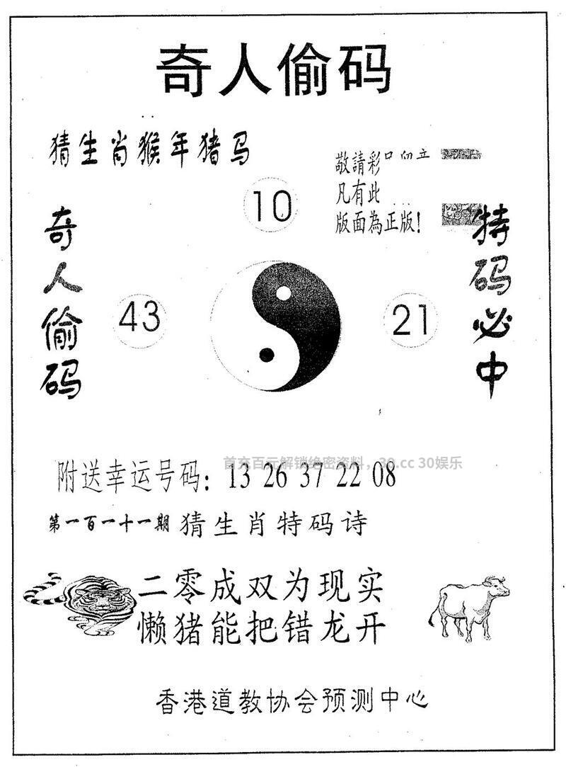 | 111期 | 猪鸡牛 | 鼠猴马 | 开:马12准 |