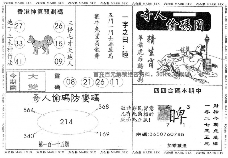 | 116期 | 蛇牛羊 | 龙猴马 | 开:發00准 |